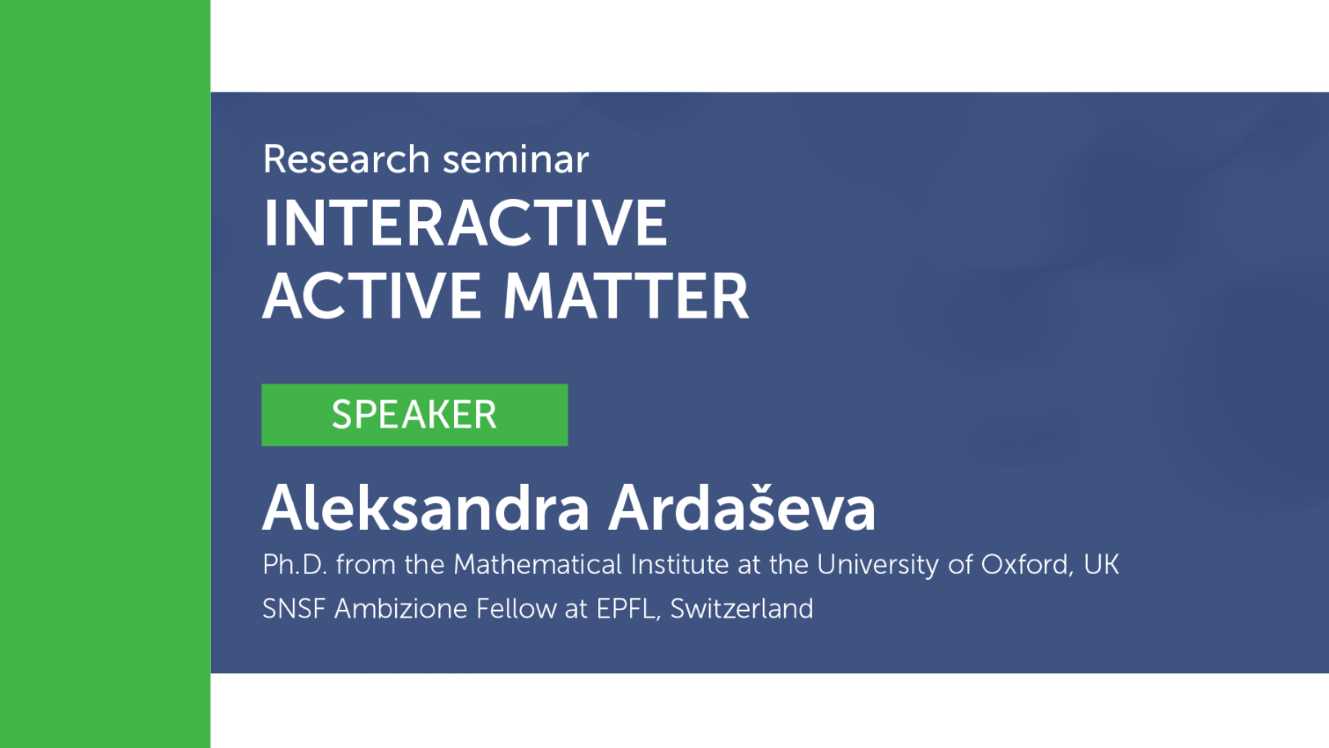 RESEARCH SEMINAR: Interactive active matter, Aleksandra Ardaševa PhD