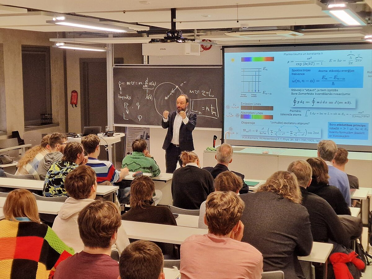 Lekciju organizēja LU Eksakto zinātņu un tehnoloģiju fakultātes Studentu pašpārvalde sadarbībā ar Latvijas Kvantu iniciatīvu.